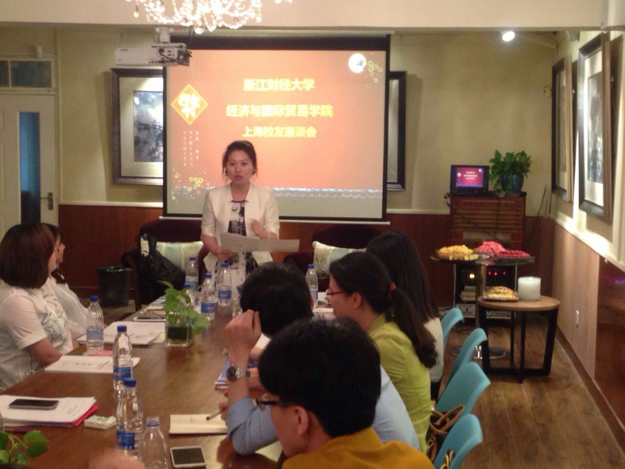 和学院的崇高敬意与美好祝愿。11届校友,现任职兴业银行的胡丽娟表示,虽然离开母校多年,但一直感恩母校和老师对自己的培养,也时刻关心关注着母校的发展,为母校取得的每一项成就而高兴和自豪。10届校友,现任职于平安银行上海分行的卢骏则希望校友们加强联络,凝聚力量,尽快搭建起广大校友交流的平台,畅通校友与母校沟通的渠道。13届校友,就职于上海蓝天房屋装饰工程有限公司洪彤说“虽然毕业时间不长,但我还是常常怀念母校。每次去杭州出差,我总要抽空到母校走走,感觉特别亲切。”现就职于上海农商银行静安支行的05届校友黄伟伟代表校友们总结发言,也道出了所有校友的心声:大学四年是最美好的青春时光,在外打拼的校友更怀念在西子湖畔度过的岁月和当年的同窗情谊,更感恩于母校的培养,也希望能为母校的进一步发展贡献自己的力量。