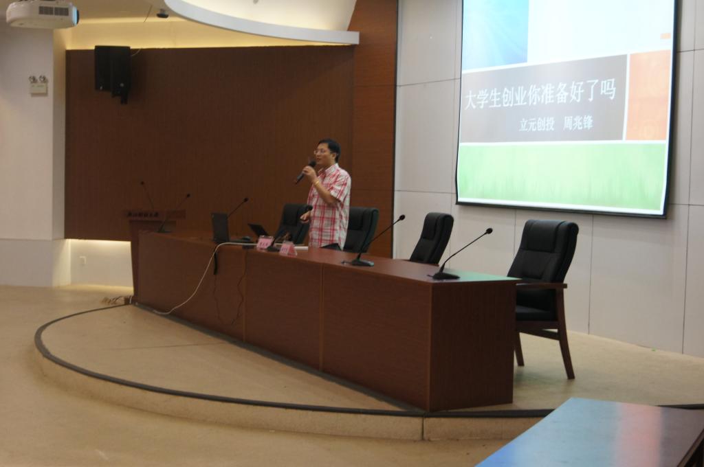 邀请了杭州立元创业投资有限公司投资合伙人、副总经理周兆锋在学院楼219报告厅举办了“两创育人”专题讲座:大学生创业你准备好了么?。柴志贤副院长主持本次讲座。