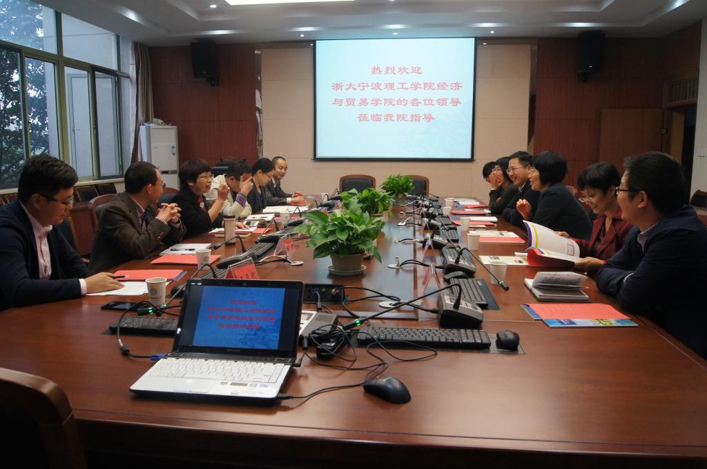 肖文院长从学院历史发展、学科建设、人才培养等方面介绍了浙大宁波理工学院经济与贸易学院现状。与会人员就如何提高科研实力、提高人才培养质量、增强服务地方能力等方面进行深入交流。双方均表示通过座谈交流,互相学习了办学过程中的经验和做法,受益良多,希望今后继续加强沟通交流,促进两院办学水平的共同提高。
