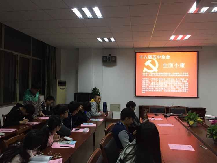 全院师生利用报纸、广播、电视、网络、手机等载体积极关注会议动态,通过召开理论中心组学习会、组织生活会、主题班会等一系列活动认真学习全会精神,并结合工作实际,开展研讨交流,畅谈感想体会,在全院上下掀起了学习十八届五中全会的热潮。