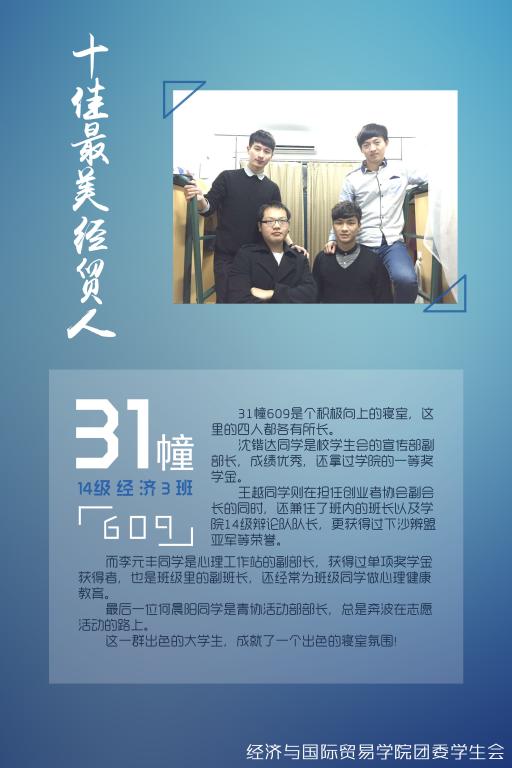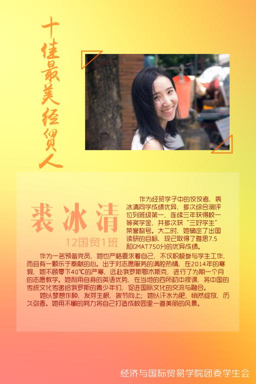 学风建设系列活动之一,通过深入挖掘身边的先进典型和优秀事例,充分发挥朋辈教育作用,在全院营造了向上、向学、向善的良好氛围,激励同学们向榜样学习,做一个敢拼搏、勇于追求梦想的经贸人!