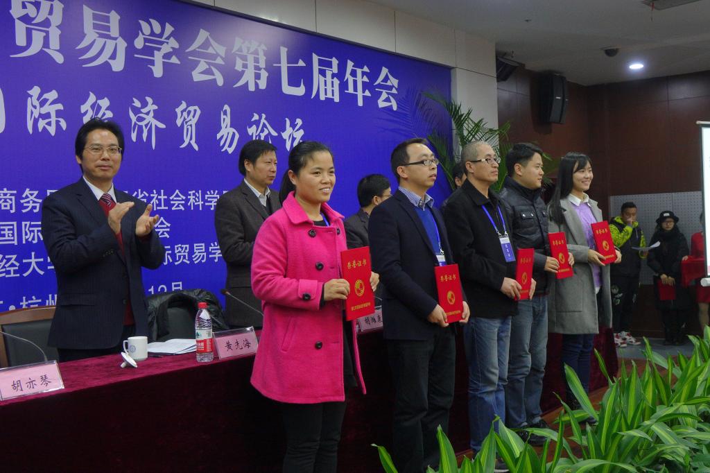 年会评选表彰了“第七届浙江省国际经济贸易研究优秀成果奖”,其中我校师生共获得理论和实务组论文一等奖1名,二等奖2名,三等奖3名。