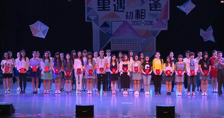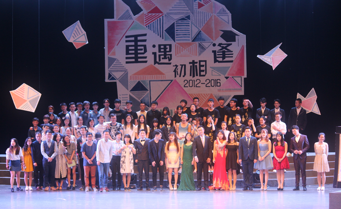 “重遇初相逢”毕业生晚会于文化中心大剧场举行。校党委副书记卢新波、院长胡亦琴、院党委书记沈水法、副院长柴志贤、王正新、院党委副书记杨小恩、学生处副处长黄金娟、信息管理与工程学院党委副书记陆颋浩、各班班主任及学院各系师生共聚一堂,为16届毕业生们送上祝福。