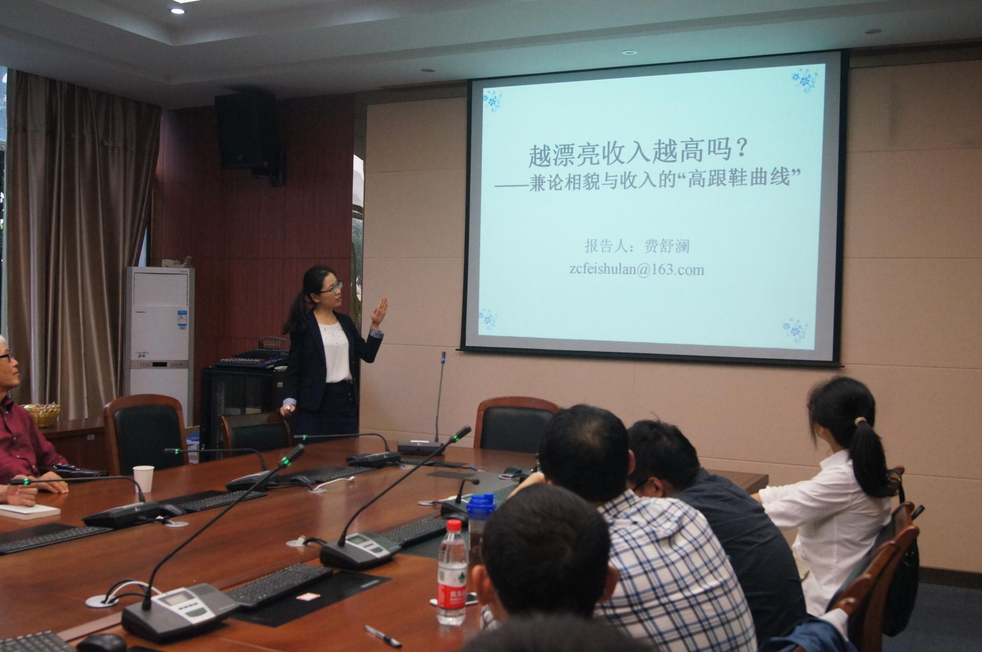 6号楼210室举行。本期沙龙主题为越漂亮收入越高吗——“兼论相貌与收入的高跟鞋曲线”,由公管学院费舒澜博士主讲,哔咔