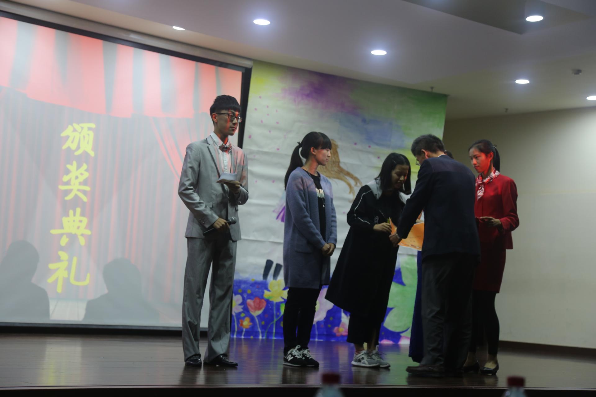晚会上,为在班级文化节中获奖的班级颁奖。其中,16经济1班获得一等奖;16国贸2班和16经济2班获得二等奖;16国贸C班、16国贸1班和16经济实验班获得三等奖;16国贸英华班、16国民经济班和16经济3班获得优秀奖。