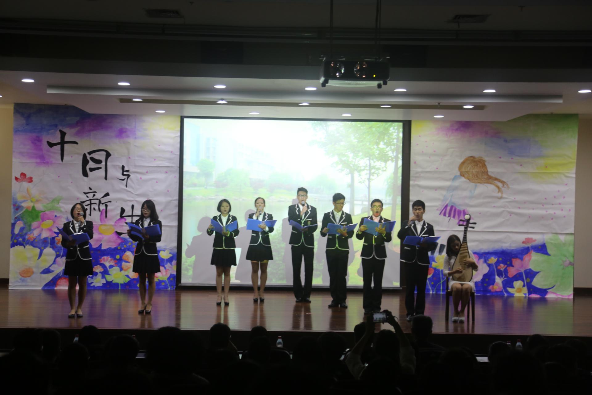 2016级本科生“十月与新生”迎新晚会在学术一报举行。学院党委书记沈水法,16级班主任赵卓嘉、熊艳、王建英老师,院团委书记费伟平及各新生班辅导员观看演出。