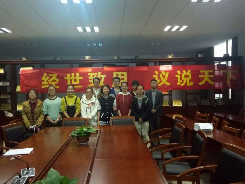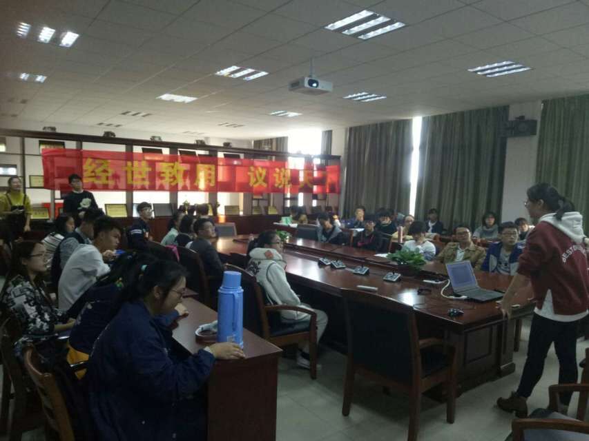313室举行2016年“经事议说”活动。本次活动以交流思想和学术研讨为目的,共有经济学会、国贸学会和15级“现代经济学实验班”三支队伍和全院近40名同学参加,活动邀请汪晓辉、文雁兵老师作为评议嘉宾。