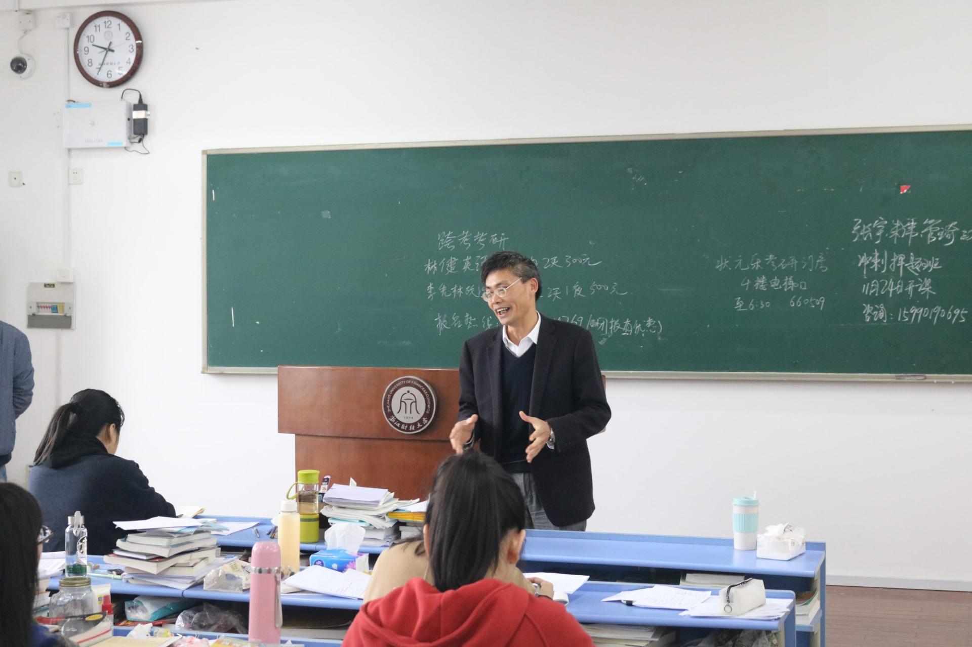 11月16日上午,学院党委书记沈水法,毕业班辅导员崔泰铭、费伟平、谭立娟到学校教学D楼516教室,看望慰问哔咔
