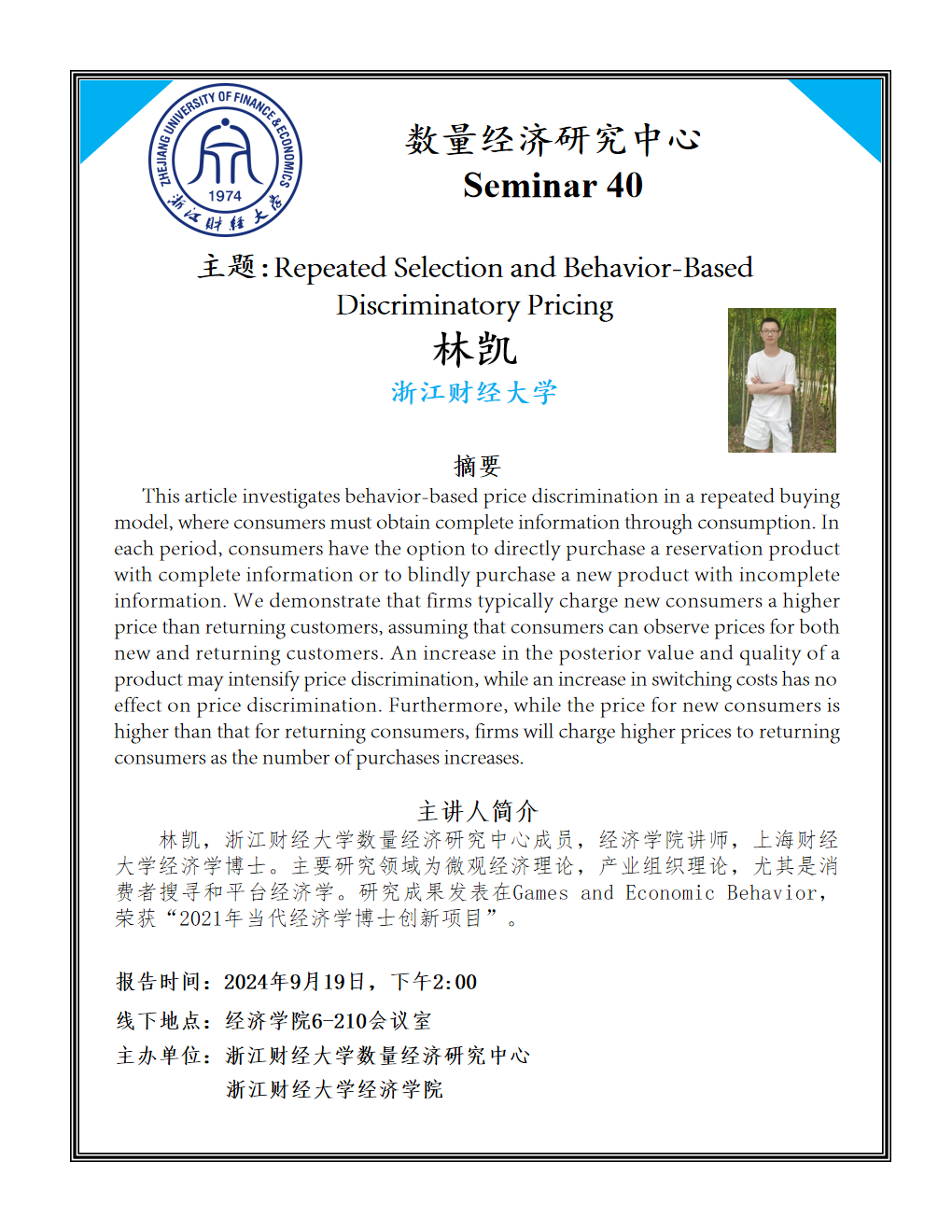 讲师,上海财经大学经济学博士。主要研究领域为微观经济理论,产业组织理论,尤其是消费者搜寻和平台经济学。研究成果发表在Games and Economic Behavior,荣获“2021年当代经济学博士创新项目”。