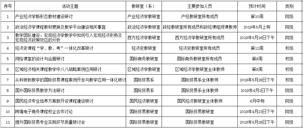 2、活动获得立项后,具体活动时间由各教研室自行商定,并提前一周将主题、主讲人(视情况而定)、时间、地点等上报学院教学办公室,以便教学办公室及时发布活动通知。