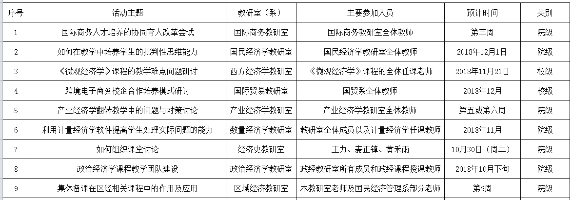 2、活动获得立项后,具体活动时间由各教研室自行商定,并提前一周将主题、主讲人(视情况而定)、时间、地点等上报学院教学办公室,以便教学办公室及时发布活动通知。
