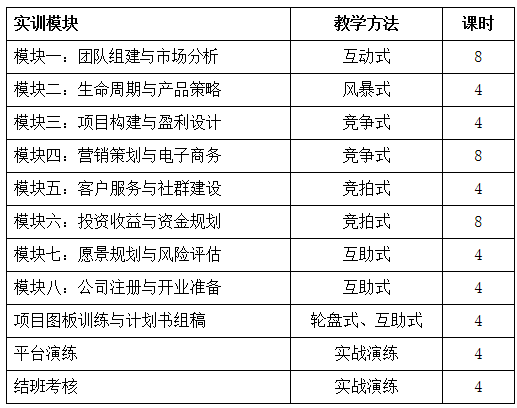 根据推动创新创业教育的有关精神和我校的创新创业教育计划,学校将联合杭州市人力资源与社会保障局和正保教育,开设《“8+X”模拟公司创业实训》第二课堂实训学习项目,培训共分为14次课,56学时,折合第二课堂2.5学分,计入培养方案的第二课堂模块。培训内容上主要覆盖了创业者在创业过程中需要了解和掌握的创业调研、项目选择、经营管理、市场营销和企业开办等相关内容,由于本项目受杭州市人力资源与社会保障局资助,实训考核合格由杭州市职业技能指导中心颁发《创业实训学员合格证书》和创业学院二课程修课证明。