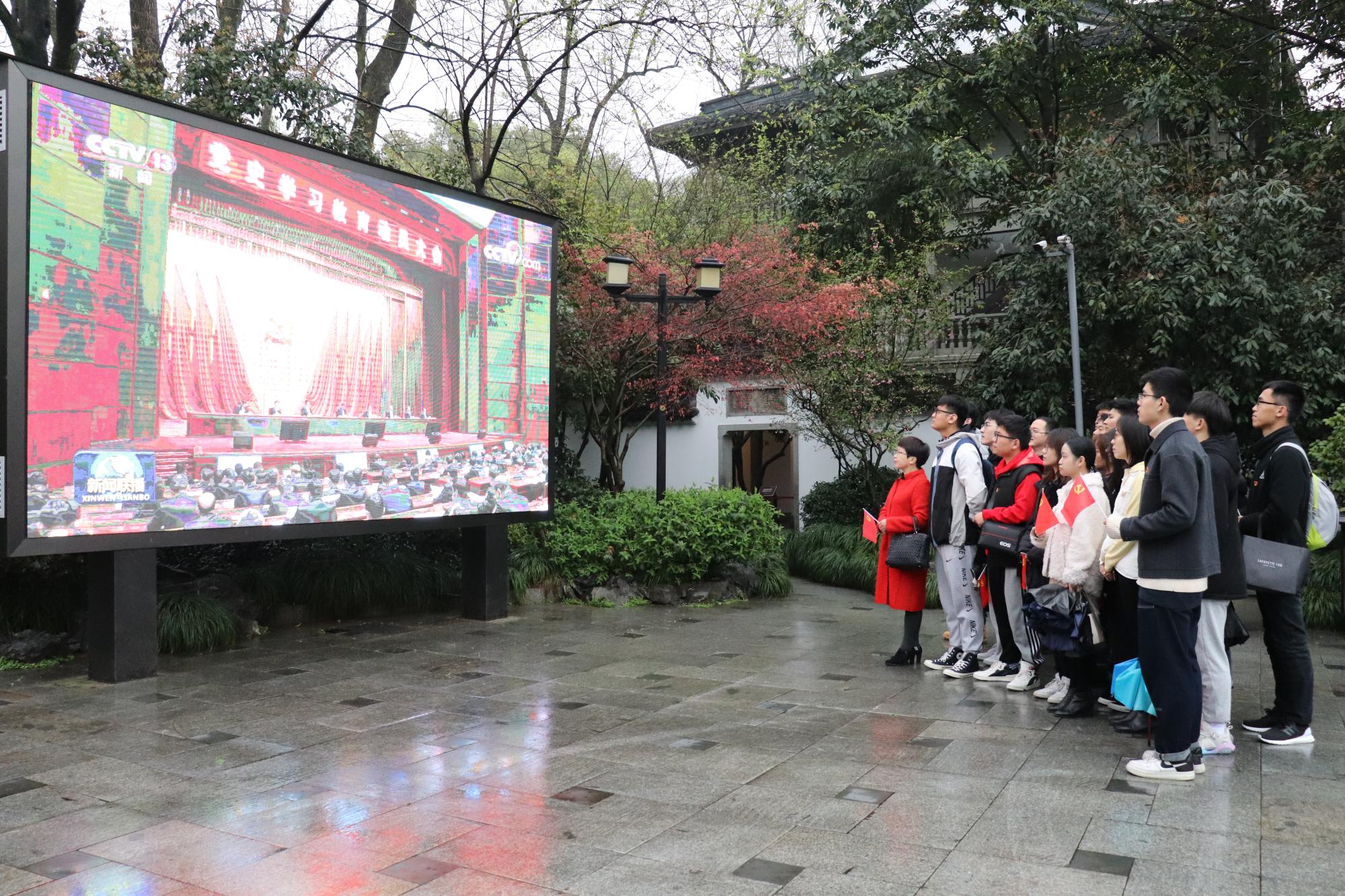 学党史,悟思想,办实事,开新局,为了带领全体师生扎实开展党史学习教育,3月18日,学院党委成立由党委书记担任团长的“经昇”宣讲团,旨在以理论滋养初心,以理论引领使命,不断提升政治三力。3月19日上午,宣讲团带领学院师生党员代表20余人来到中国共产党杭州历史馆开展第一次宣讲学习活动,进行“学党史”现场教学,通过线上直播的方式将宣讲内容传播给在校的师生,在线学习人数达到4000余人。
