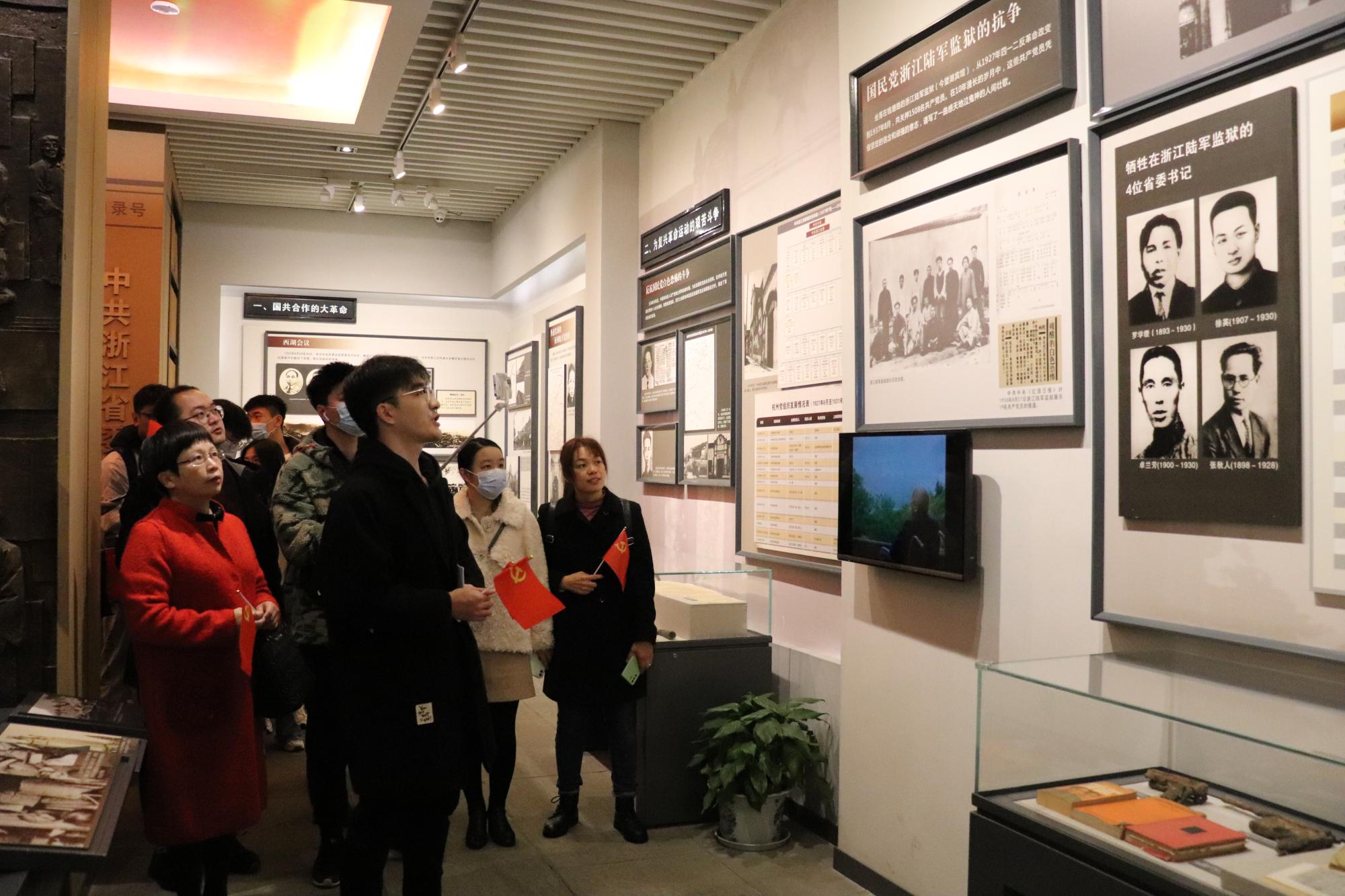 在观看学习完习近平总书记关于党史学习重要讲话的影片后,参与人员跟着主讲人依次学习了历史馆中“民族独立人民解放的杭州篇章”、“推进社会主义建设的杭州记忆”和“中国特色社会主义道路的杭州实践”三个篇章的内容,了解了党领导下杭州市发展的历程。现场一张张黑白图片,一件件真实物件,一段段波澜壮阔的历史,记录了党组织带领杭州人民争取民族独立和人民解放的伟大征程,那是杭州不平凡的创新史、奋斗史和辉煌业绩。