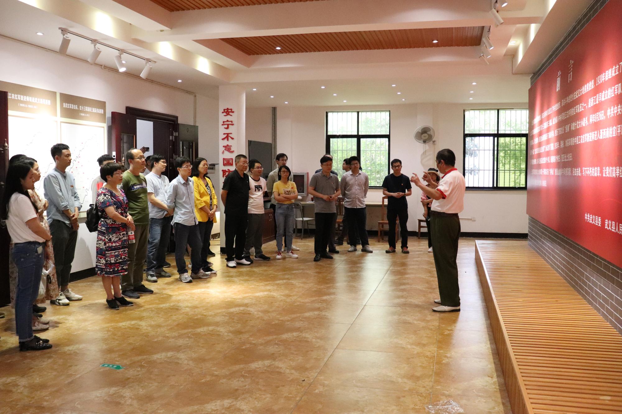 武义是一个具有光荣革命斗争传统的革命老根据地县,曾是浙江省第一支红军建立地、浙江省第一批县委建制地以及金华市县级第一个党支部成立地。浙武红军与挺进师纪念馆位于武义白洋街道王村,是目前浙江省建筑面积最大、史料最齐全的红军纪念馆。学院党员怀着崇敬的心情,在纪念馆讲解员的带领下,了解了浙江省作为革命红船起航地在共产党成立初期做出的历史贡献,通过一张张图片和一件件文物,直观感受了在硝烟四起的战争年代,中国共产党领导的红军战士抛头颅洒热血,在武义大地上浴血奋战的英勇事迹,深刻体会到中国共产党团结带领人民取得革命胜利的艰难和伟大。
