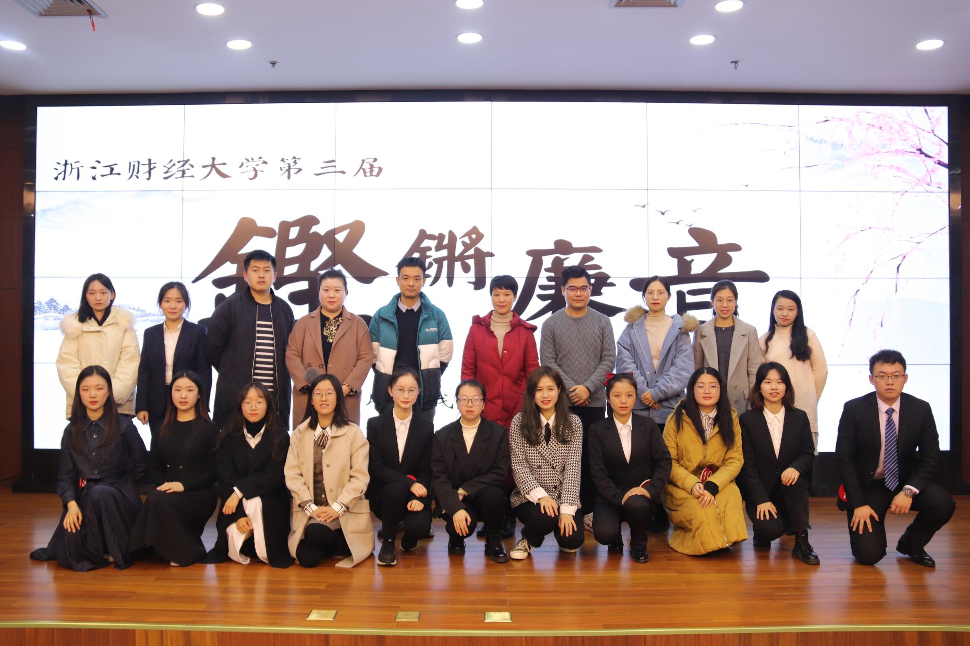 第三届铿锵廉音主题演讲比赛。校党委委员、宣传部部长楼胆群,校党委组织部费伟平,校党委宣传部俞榕,校纪检监察室林建梅,校党委学生工作部黄迪,校团委副书记徐艳妍,校党委研究生工作部施淑珍,以及哔咔