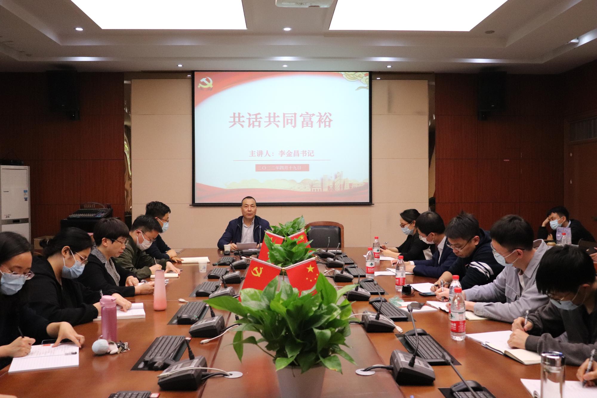 4月19日下午,李金昌书记在学院楼210会议室为党员教师讲授了“共话共同富裕”专题党课,党课由支部书记王鑫鑫主持,学院领导班子、教工第一党支部党员共25人参加学习。