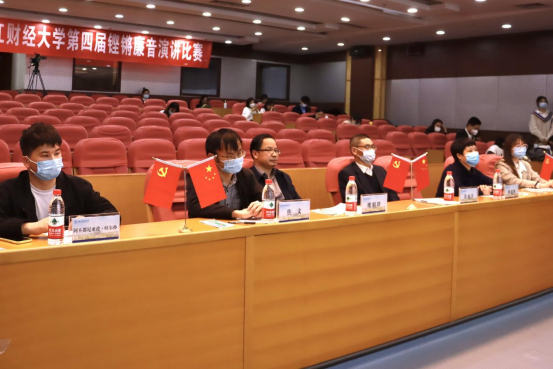 第四届“铿锵廉音”演讲比赛。校党委委员、宣传部部长楼胆群,校纪委副书记兼纪检监察室主任沈水法,校党委宣传部焦文,校纪检监察室林建梅,校党委学生工作部阿不都尼亚孜·吐尔孙,校党委研究生工作部俞逸雯,哔咔