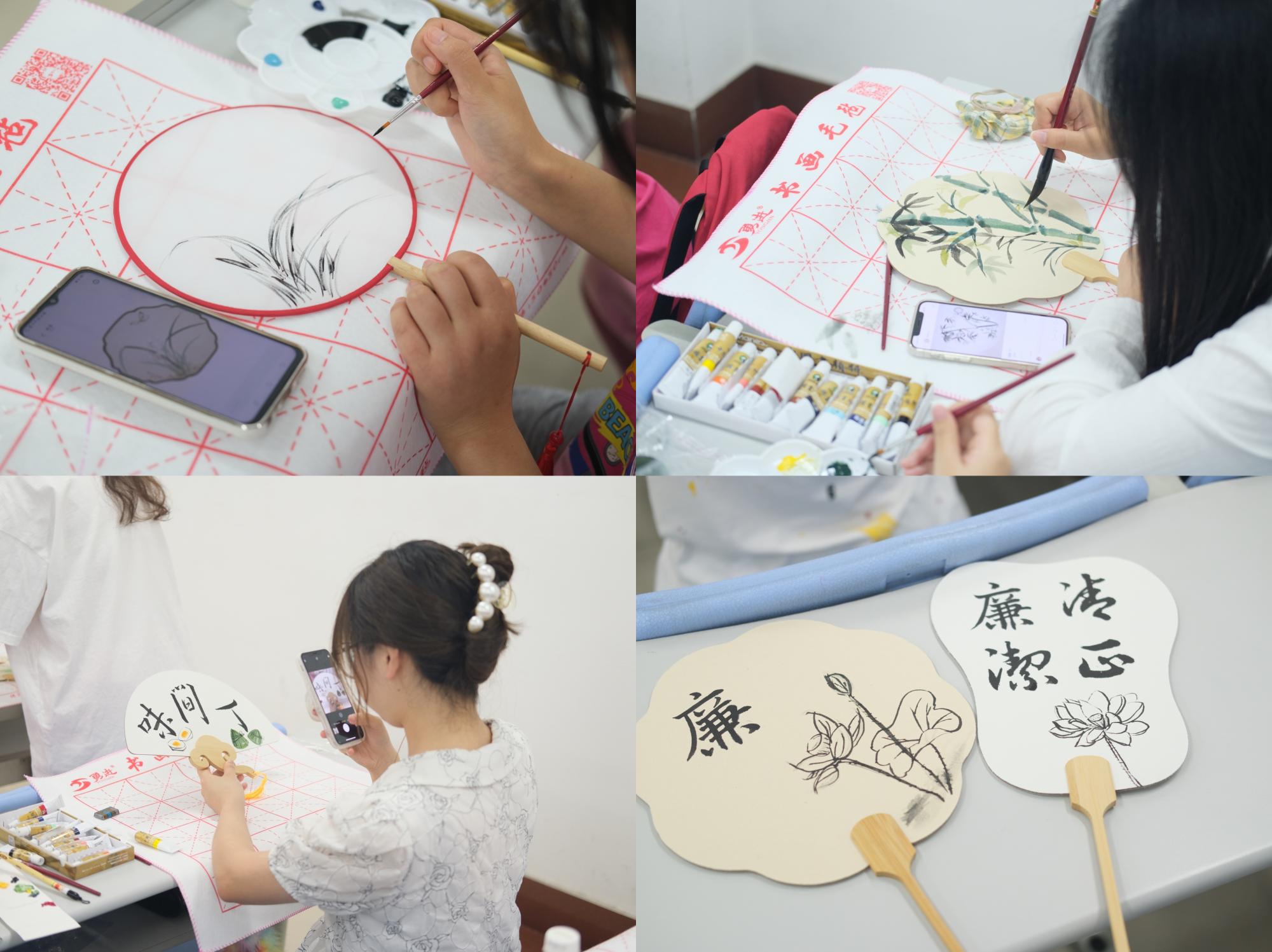 活动深挖端午的廉洁文化内涵,巧借“扇”与“善”、“清”与“廉”的寓意,采用画“廉扇”的形式,营造学廉、知廉、尊廉、倡廉的浓厚氛围,丰富了廉洁文化教育教学载体。当水墨与廉洁相结合,莲花、梅兰竹菊等跃然于扇面。团扇摇曳,不仅扇出阵阵凉风,更送出了清廉之风。