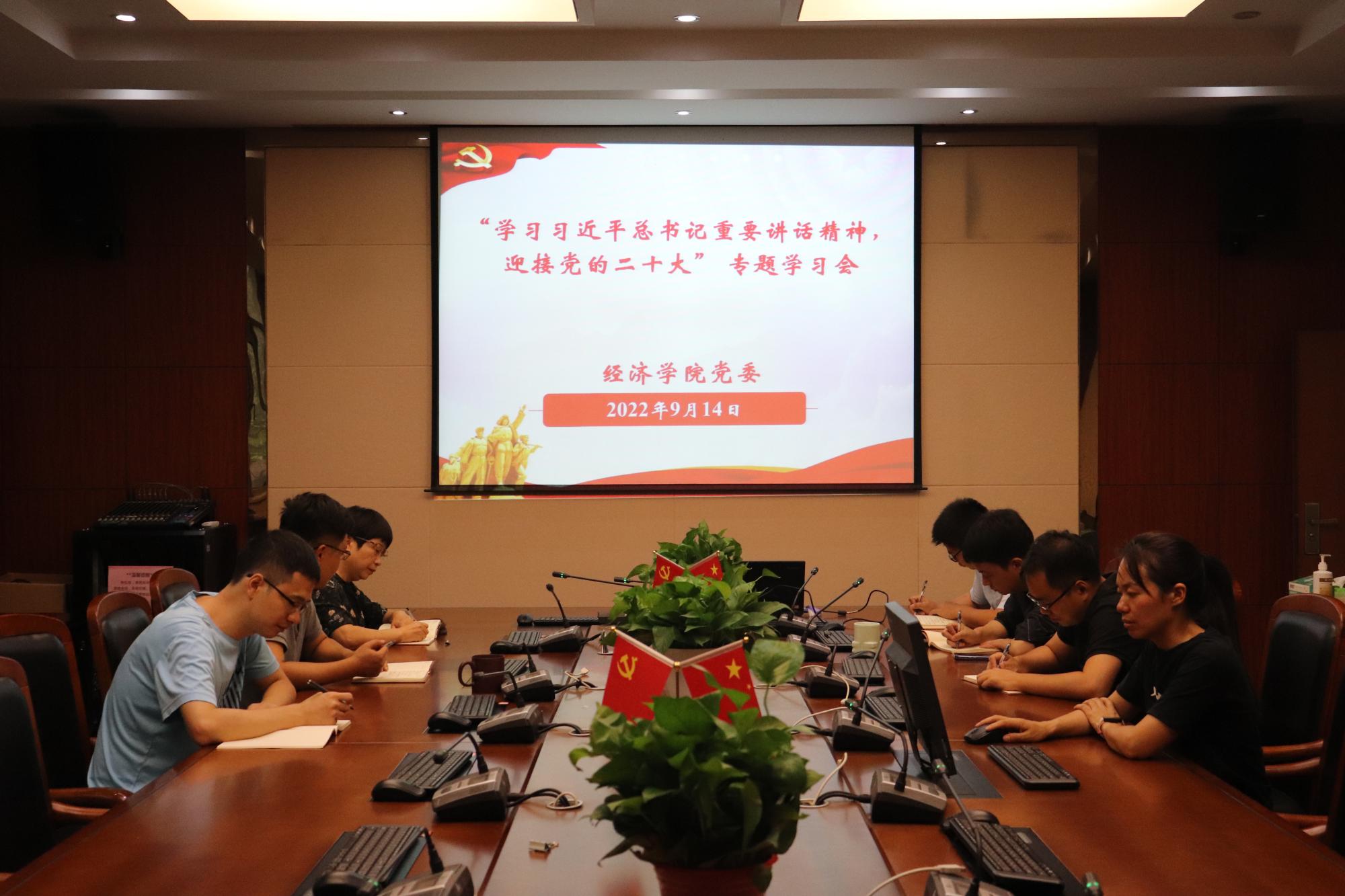 9月14日,学院党委在210会议室召开“学习习近平总书记重要讲话精神,迎接党的二十大”专题学习会。学院领导班子成员参加,办公室主任、组织员列席,会议由党委书记胡亦琴主持。