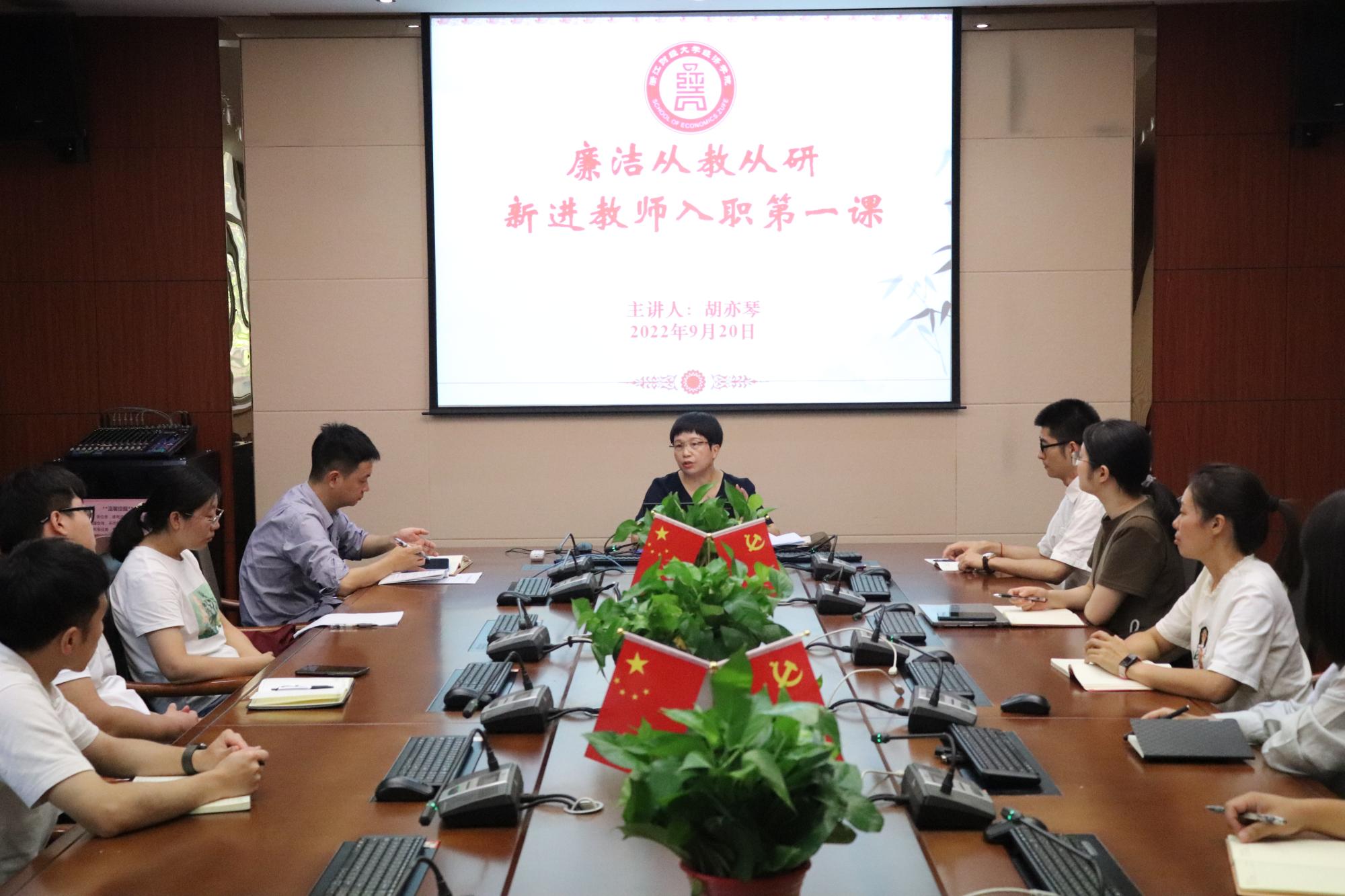 为切实加强师德师风建设,培养新进教师良好的职业道德和敬业精神,9月20日,学院党委书记胡亦琴为新进教师开展了“廉洁从教从研”入职第一课,学院9名新进教师参加。