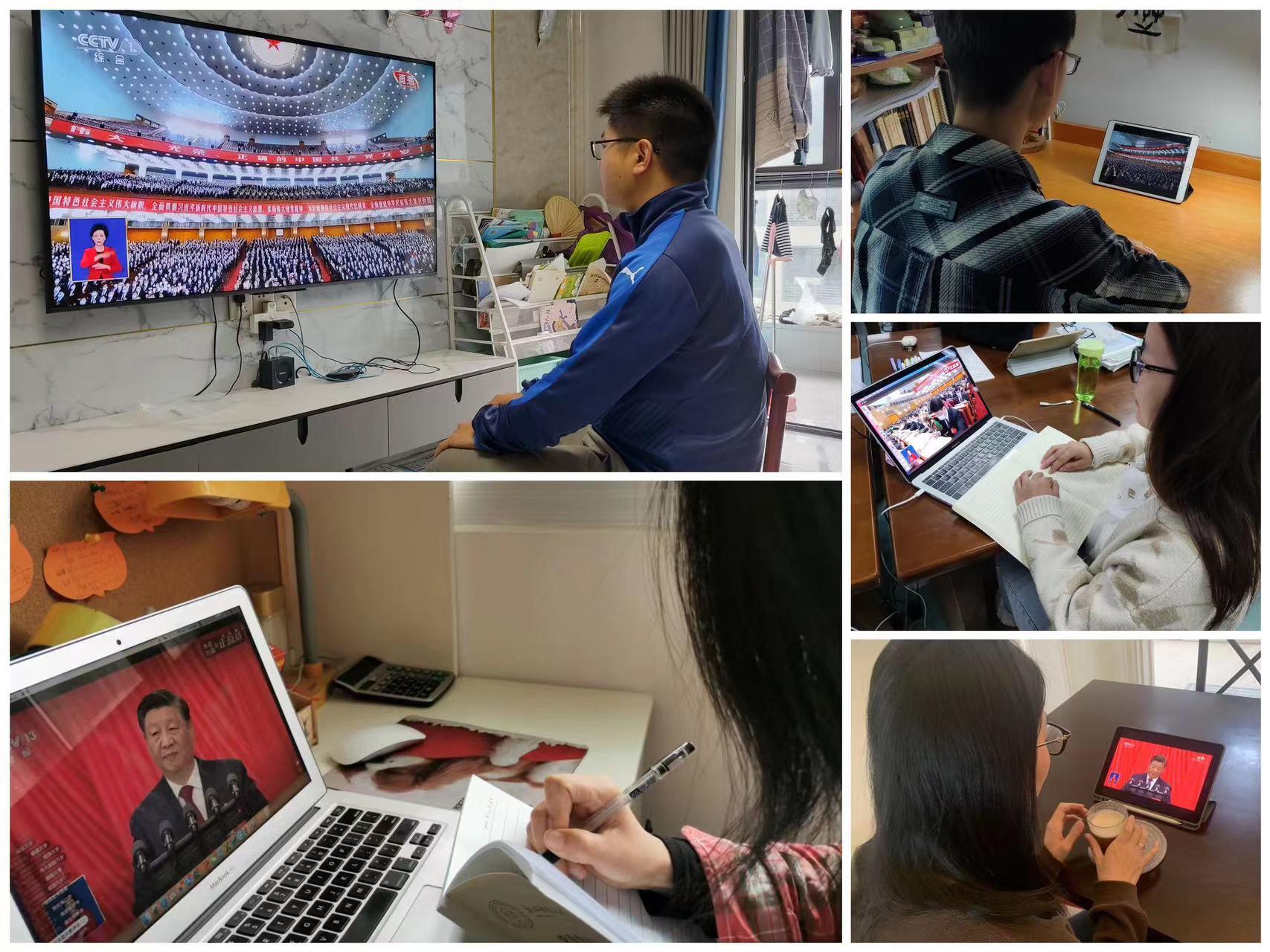 学院党委统筹安排,组织全体师生党员在教学楼、生活区或家中,通过电视、手机等多种形式收看党的二十大开幕会实况直播,并组织党员干部和师生代表在6号学院楼会议室、教室集中收看,认真聆听习近平总书记所作的题为《高举中国特色社会主义旗帜 为全面建设社会主义现代化国家而团结奋斗》的报告。