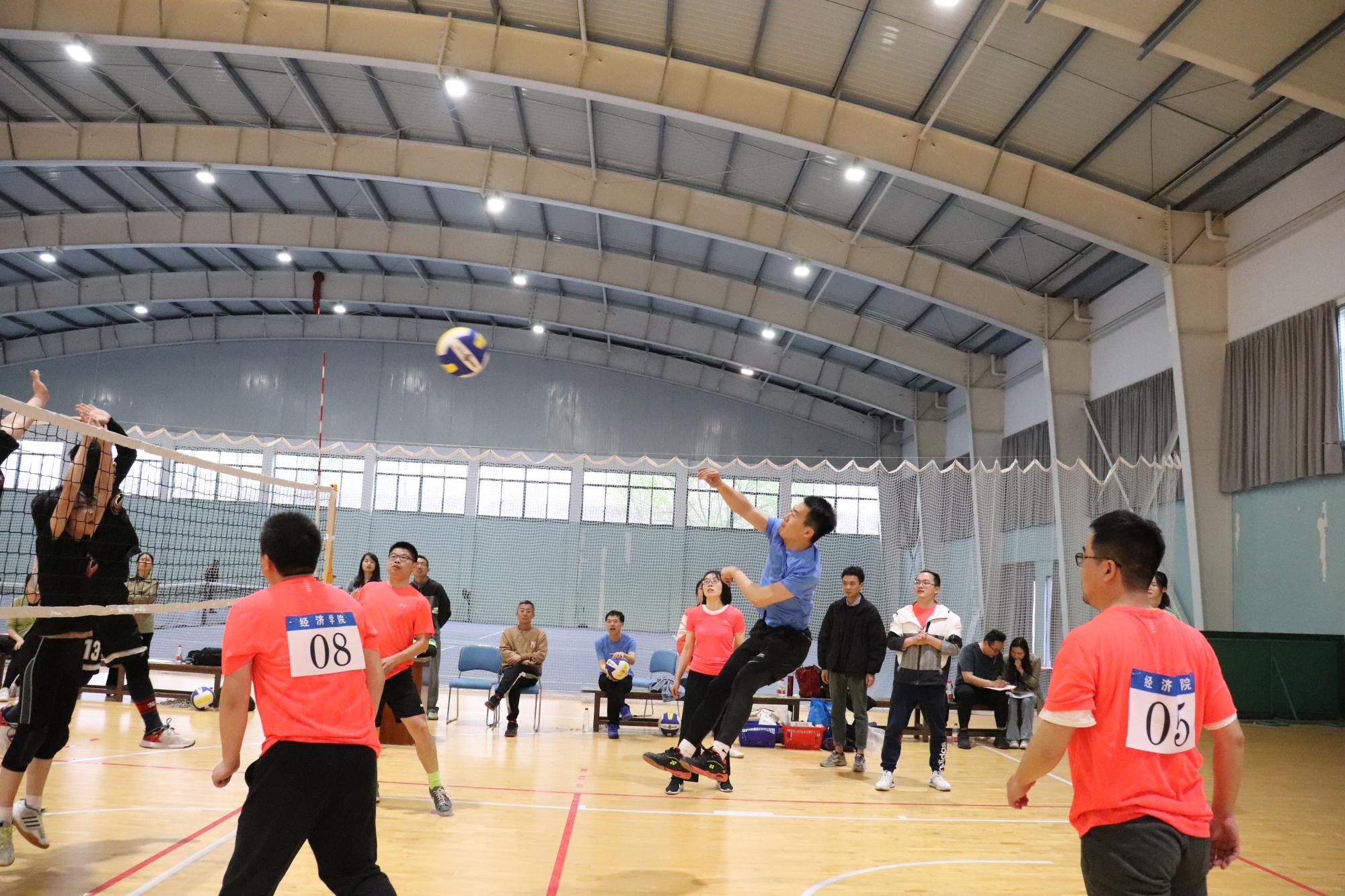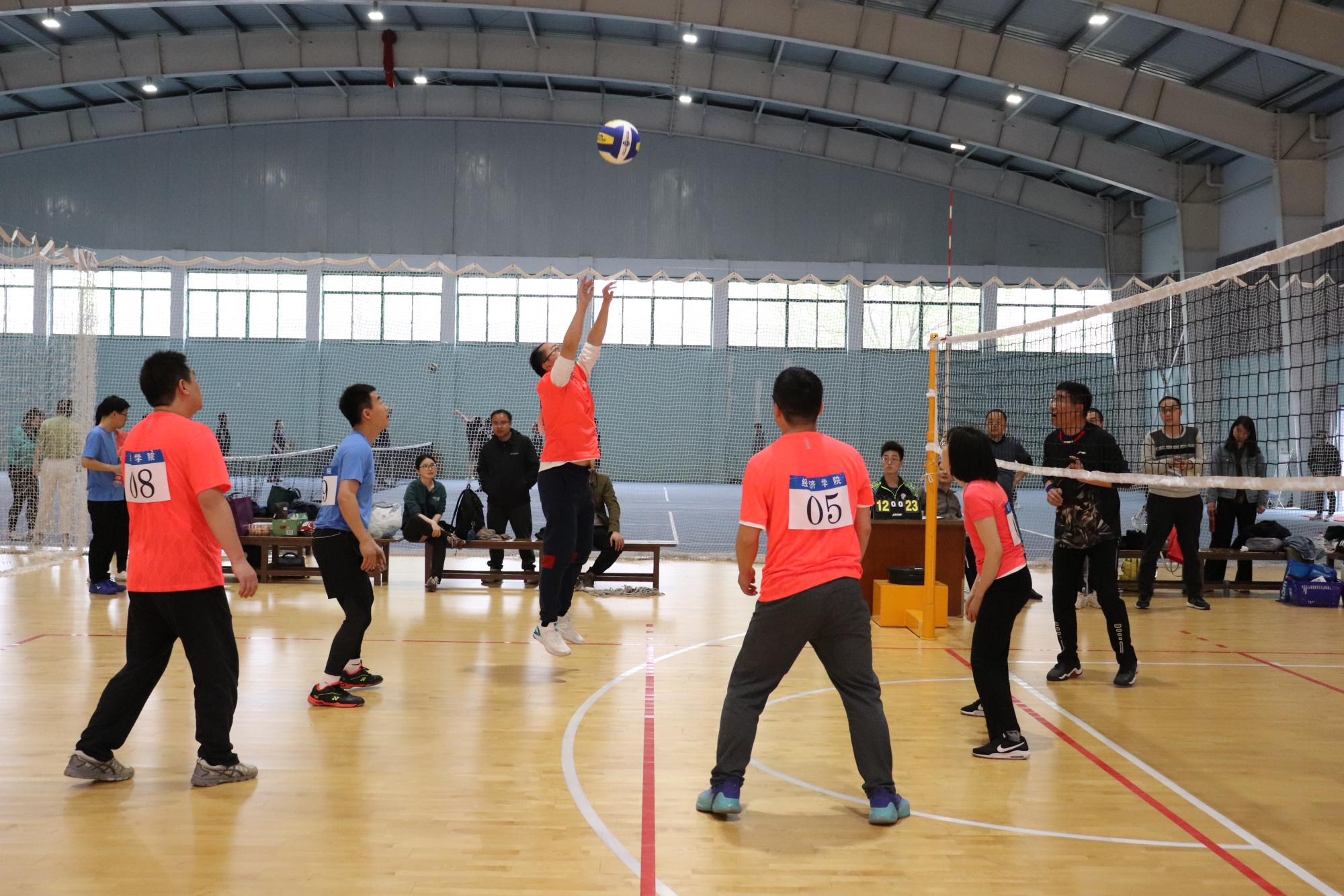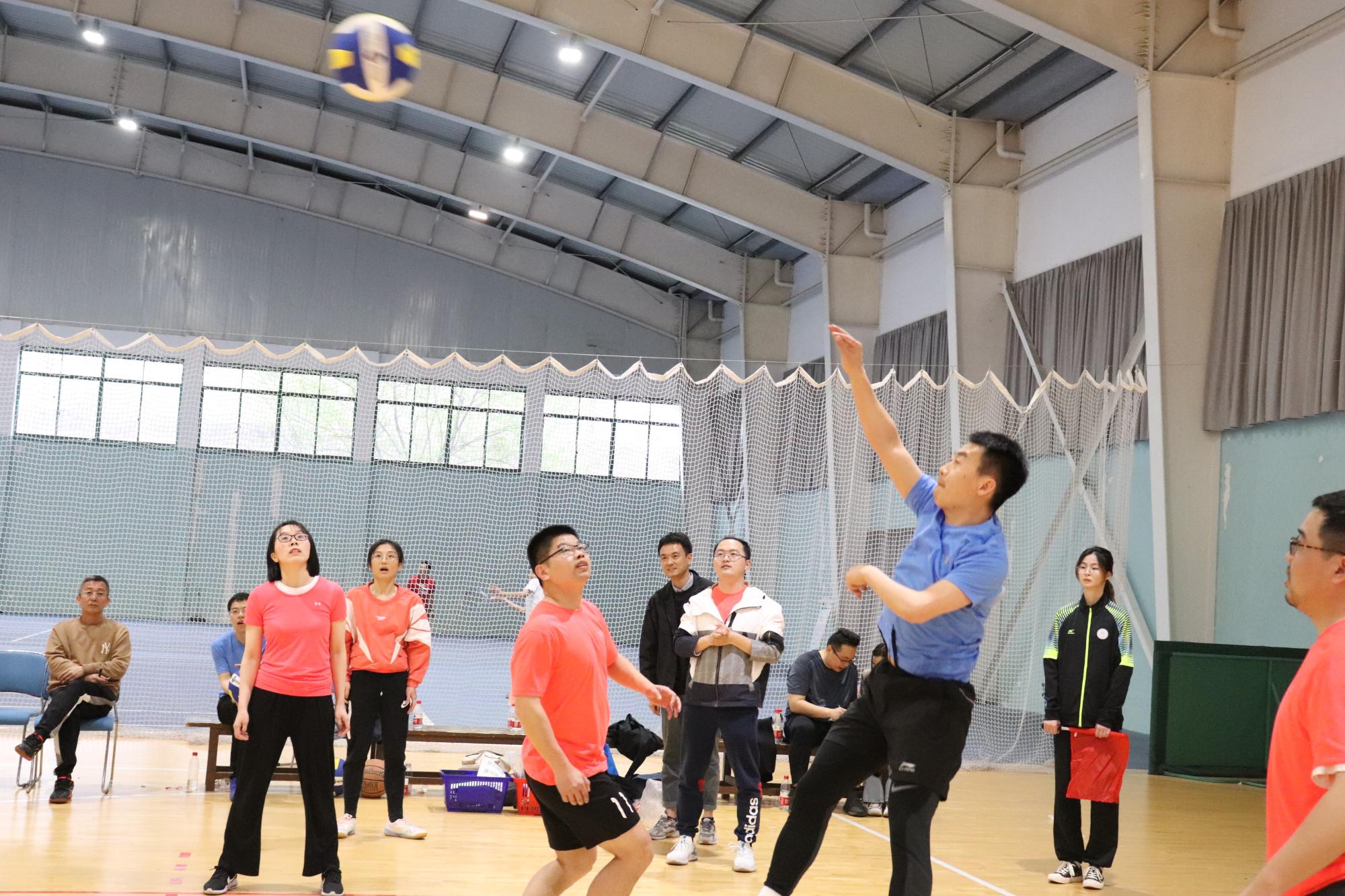 教职工气排球比赛。4月15日,比赛在下沙校区体育馆北场馆打响,来自全校20个院级工会的20支队伍参加比赛。