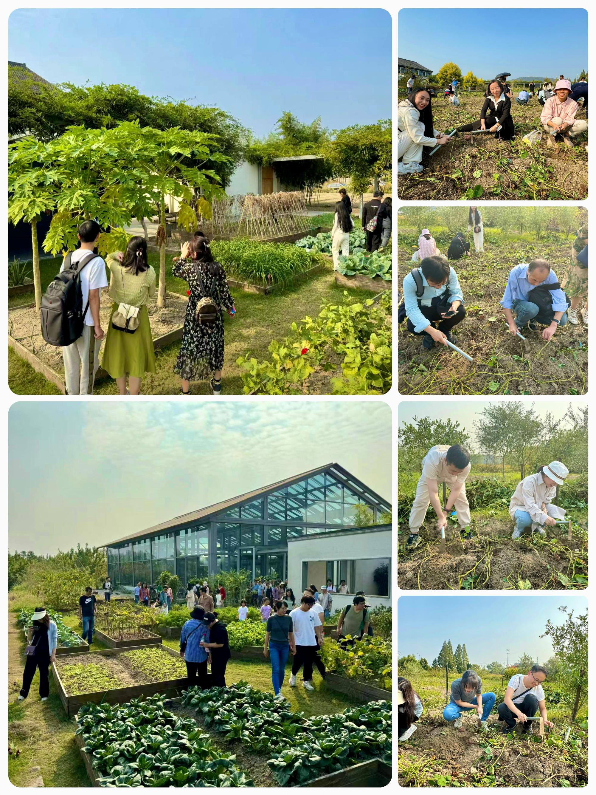 午后,教职工参观了蓝城集团旗下的蓝城双浦原乡项目,进行了深入的研学游。项目讲解员为大家介绍了项目运营的整体情况,通过现场交流、提问,老师们对蓝城打造农业科技、农业教育、农旅研学一体化的现代农业发展实践进行初步的了解,并提出未来开展产学研合作的展望。随后大家走进田间地头,亲手挖红薯、摘火龙果,体验了农耕的乐趣和收获的喜悦。