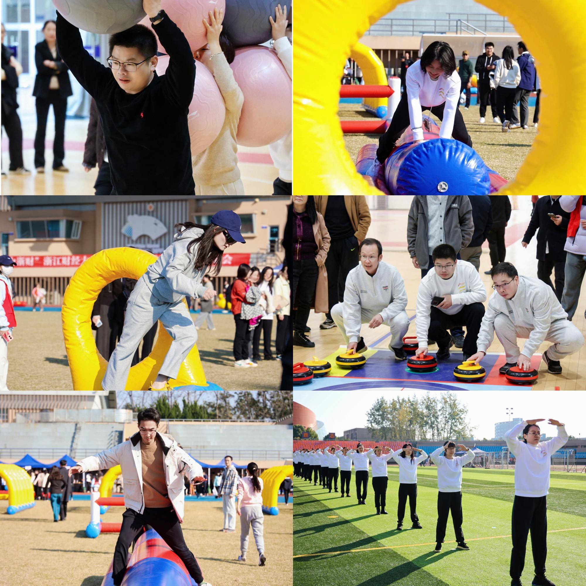 在各项目中,学院代表队亮点纷呈、捷报频传。“障碍闯关”项目中,队员们沉着应对、灵活穿梭,凭借高效的团队协作与快速的临场反应,成功摘得该项目第一名的桂冠;“砥砺前行”项目中,队员们在协作中突破自我,同样拿下第四名的好成绩;“长绳连跳”项目里,大家默契配合、连续跳跃,最终收获第六名的佳绩,充分展现了学院教职工强大的凝聚力与向心力。田径项目的赛场上,学院选手同样展现出强劲实力。“4*100米接力赛”赛道上,四位参赛教师衔接流畅、奋力冲刺,最终以出色表现获得第四名;吴枢老师荣获男子铅球(45岁以下组)第二名,延续了学院在力量项目上的优势,为团队增添了重要分数。