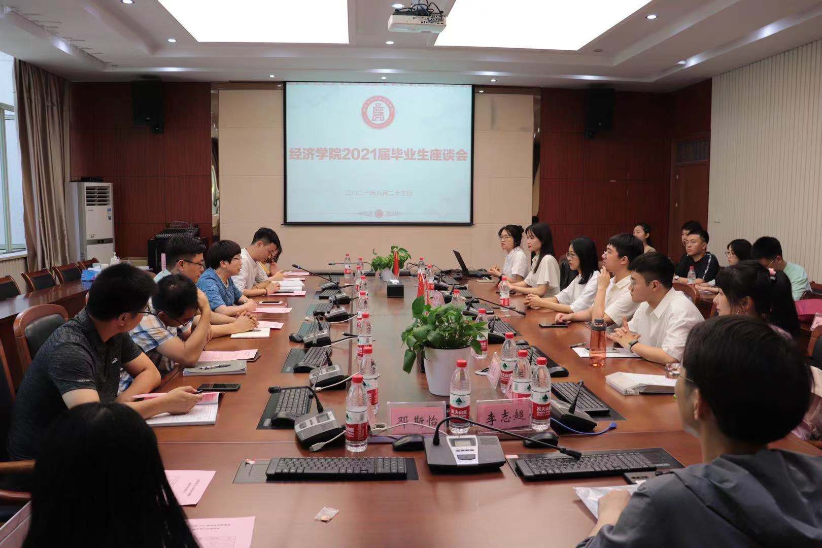 举办了2021届毕业生座谈会,院长王正新、党委书记胡亦琴、副院长罗俊、党委副书记崔泰铭、院长助理邓晓军、教学办主任高晓菁、学办主任李伶俐、团委书记曹仲晔、辅导员韦罗成、邓斯怡,与哔咔