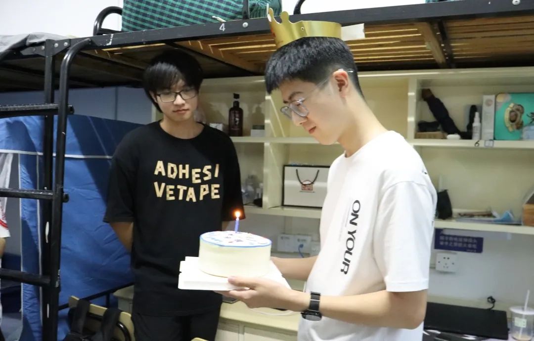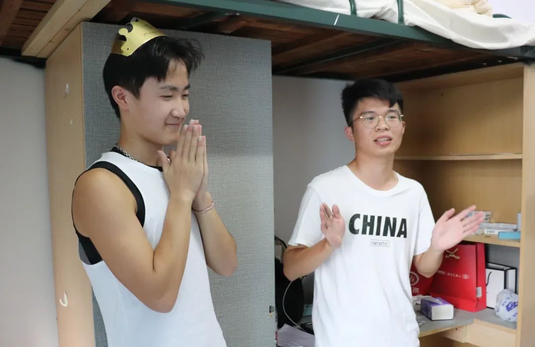 迎新当日,正值王宇、卢宇轩两位同学的生日,新生班主任、辅导员和班导们在宿舍中为他们一同庆生。轻松愉快的氛围,拉近了同学与老师间的距离,在生活的细碎点滴之中,拼凑出一本崭新的书集。