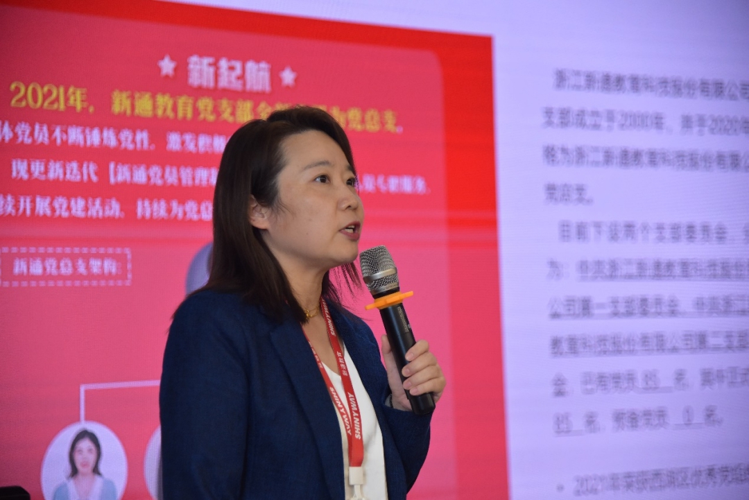 恰逢党的二十大胜利召开,为助力学生干部坚持自我革命,坚定不移跟党走,新通教育总裁办主任杜碧虹老师向大家介绍了新通党支部的基本情况、党组织日常学习内容及新通教育在社会公益中做出的贡献、承担的社会责任,让学生明白,要将自我价值与社会价值相结合,将小我融入大我当中,加深了对党的认同感、归属感。