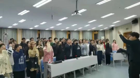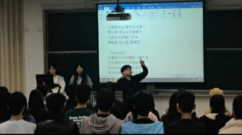 音乐教学在大家期待的目光中拉开帷幕,李老师向大家普及了合唱的基本知识,介绍了合唱的特点。就《当那一天来临》与《一路生花》两首歌,细致的展开分析。对不同段落的发声方式,节奏地掌握,气息的处理,情感的表达进行了一系列的指导,让大家在更好的演唱这两首歌的同时也对音乐知识有了更深入的了解。