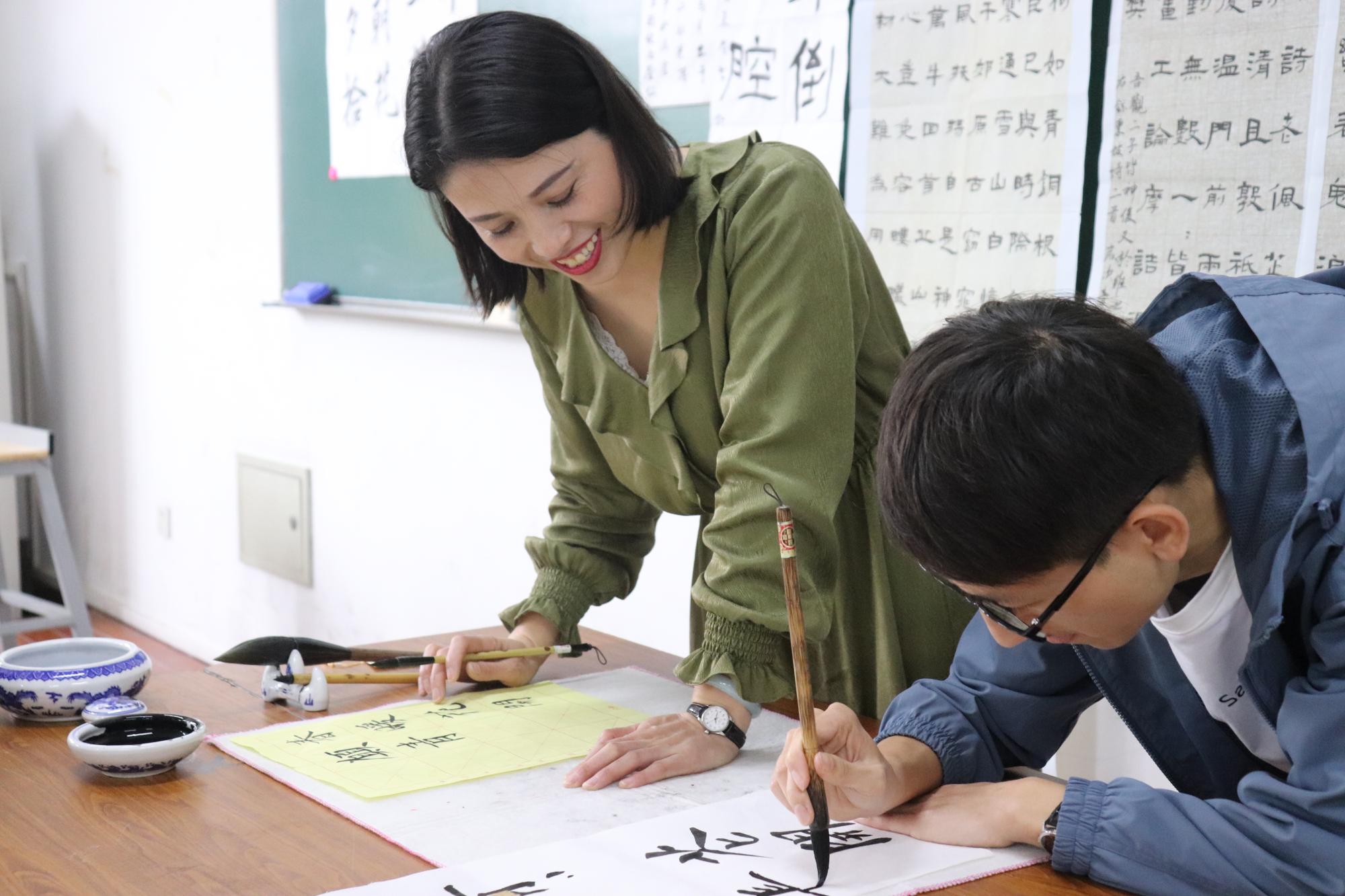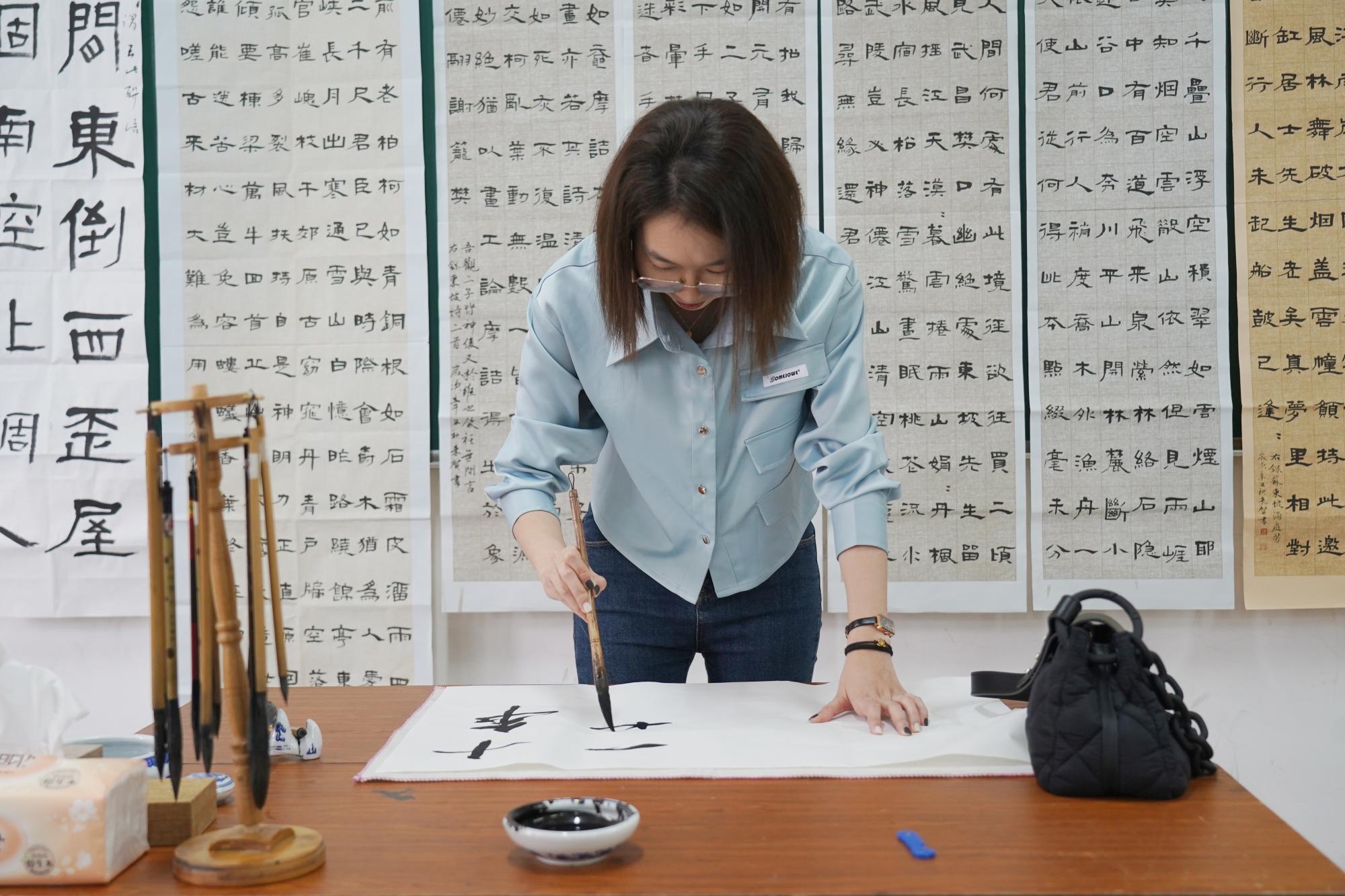 上午11时,返校日现场书法展在学院楼105教室展开。书法作为中国传统艺术,蕴含着深厚的历史文化。在返校之际,学院特别设置了“汲古书屋”供校友留下墨宝,这是经院人祝福母校与书法艺术的一次奇妙组合,超过50余人参观、参与了书法展览。
