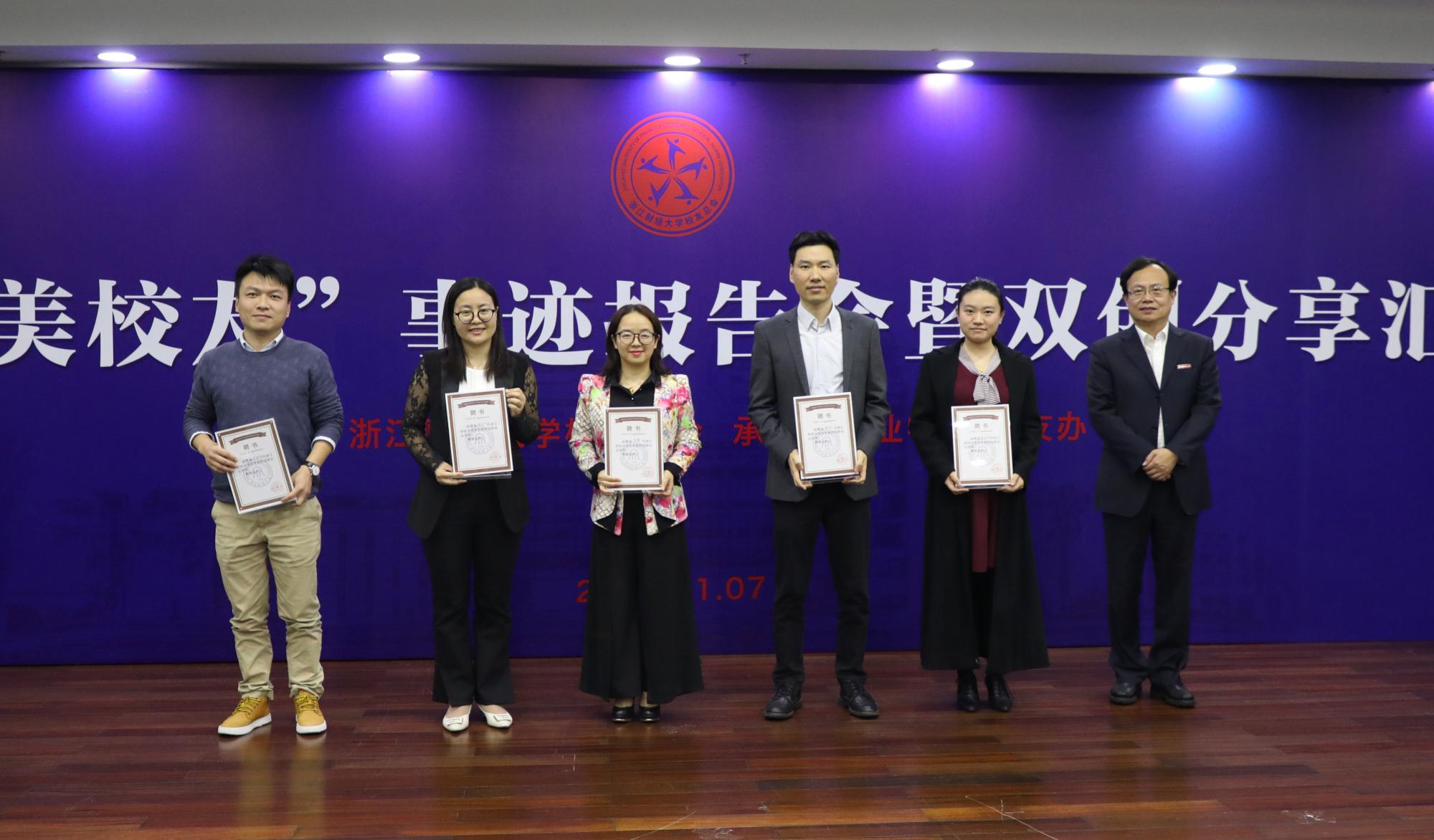 07届校友王加俊荣获第七届“最美校友”荣誉称号。校长钟晓敏为第七届“最美校友”代表颁发“最美浙财人之桃李奖章”。