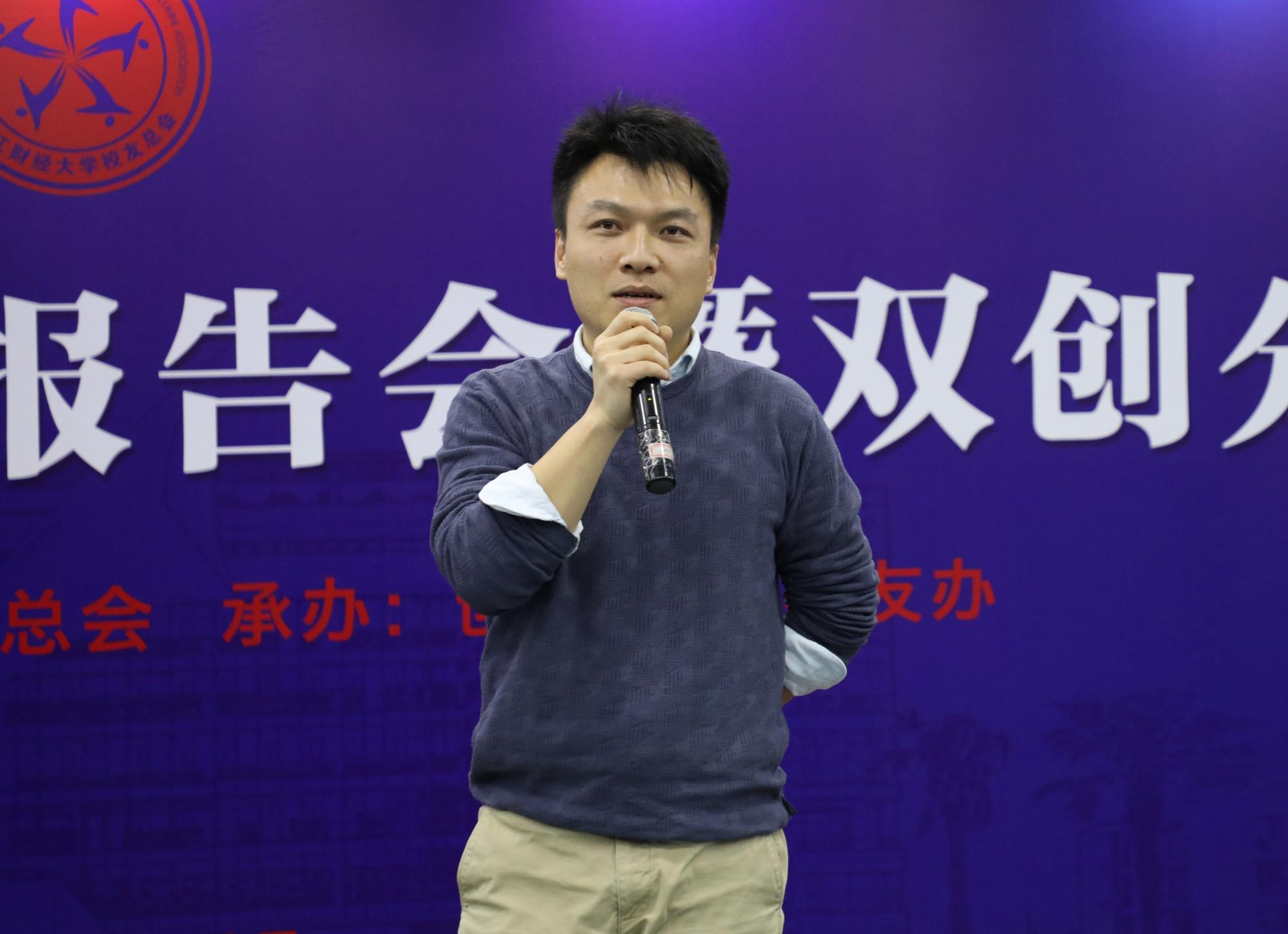 “最美校友”事迹报告会暨双创分享汇。校党委副书记黄建新为其颁发了“创新创业导师”证书。