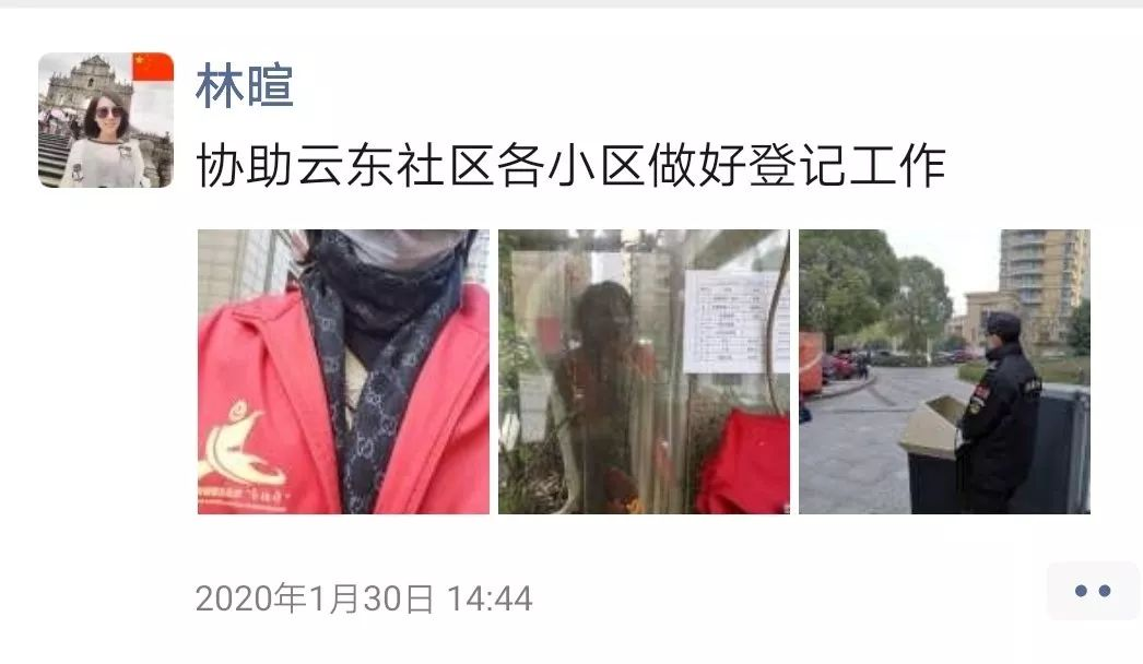 02级国贸专业的林暄学姐参与了社区的登记工作,她告诉我们身边有许多人都在为这次疫情贡献着自己的一份力。一起做志愿工作的一位小伙子在嘉兴读大学,为了补贴家用在寒假打工,碰到这么严重的疫情,他们虽然不是正式员工却在非常时期加大工作量,极其负责的登记信息、测体温,外面气温很低他们却没有怨言坚守岗位,为这些小伙子点赞。