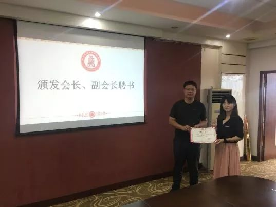 舟山校友分会授旗并为理事会成员颁发聘书。