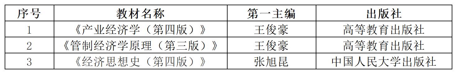 近日,浙江省教育厅发布了《关于公布浙江省“十四五”普通高等教育本科规划教材目录的通知》,哔咔 王俊豪教授的《产业经济学(第四版)》、《管制经济学原理(第三版)》和张旭昆教授的《经济思想史(第四版)》获评“十四五”省级规划教材。其中,王俊豪教授的《产业经济学(第四版)》、张旭昆教授的《经济思想史(第四版)》获推荐申报“十四五”国家级规划教材。