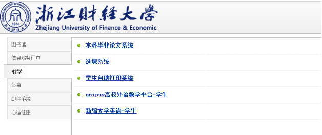 点击“信息服务门户”→进入“智慧财大信息服务门户”→点击“教务系统”(自动登录,无需再次输入账户密码)