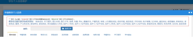 在“学生个人信息维护”中点击右上方“申请”,填写相关内容并提交,修改内容立即生效。